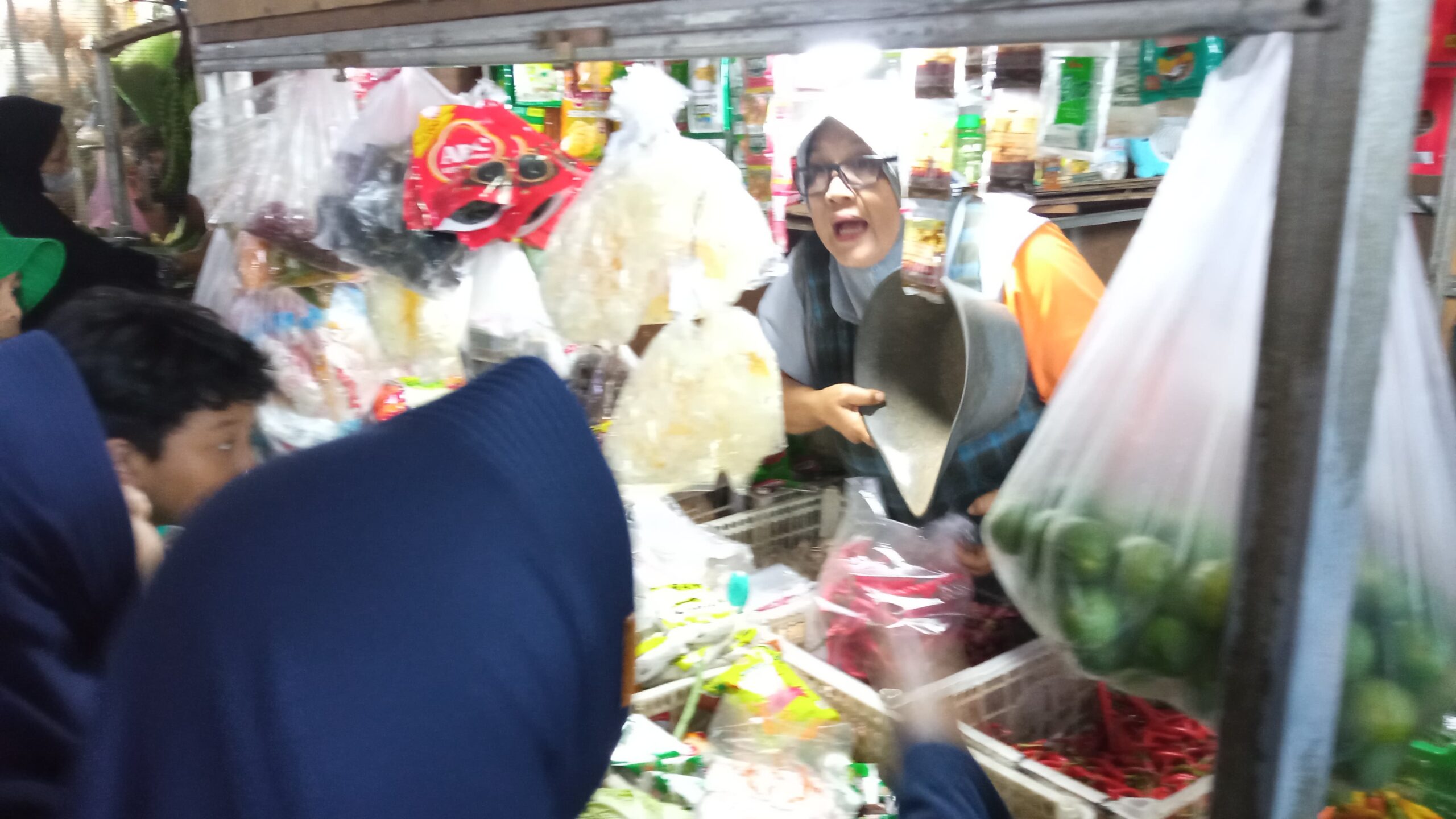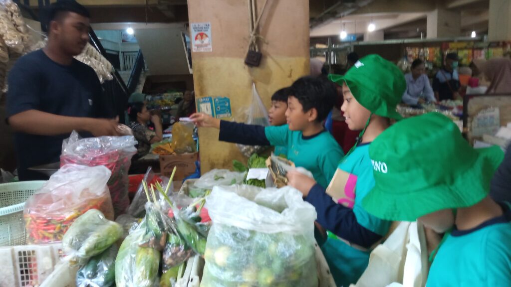 Mereka memulai bertanya dan berinteraksi dengan pedagang, dengan pertanyaan seperti yang sudah diajarkan bapak ibu guru sebelumnya, seperti: