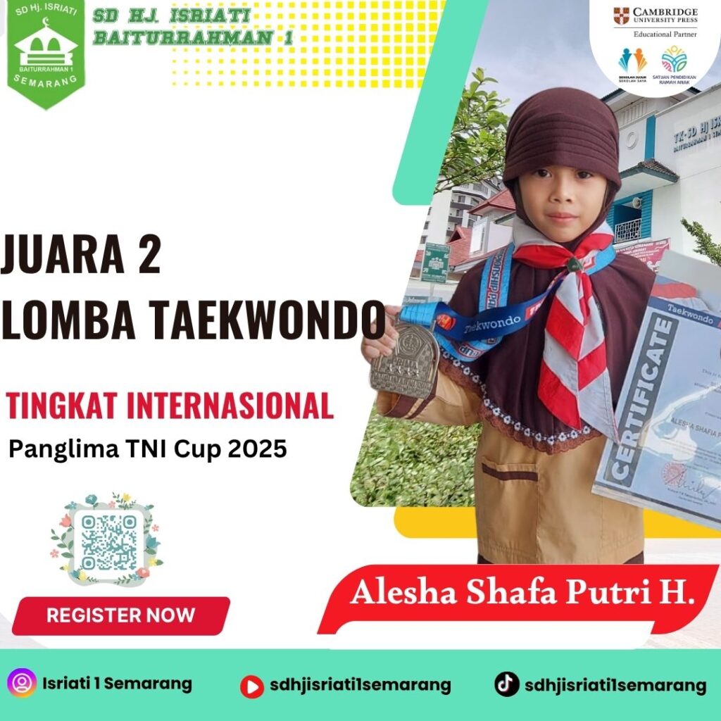 1. Alesha Shafa Putri Hakim 3A. Juara 2 Taekwondo Level Internasional (Panglima TNI Cup 2025) Taekwondo Indonesia.