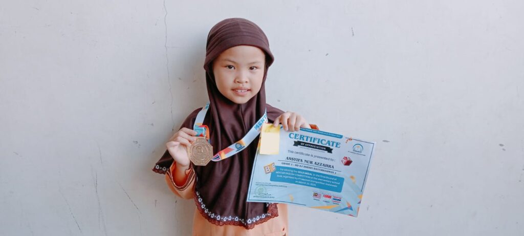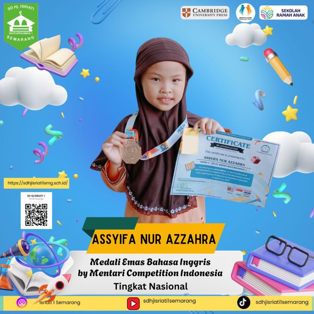 - Assyifa Nur Azzahra 1A. Medali Emas Bahasa Inggris Level Nasional by Mentari Competition Indonesia