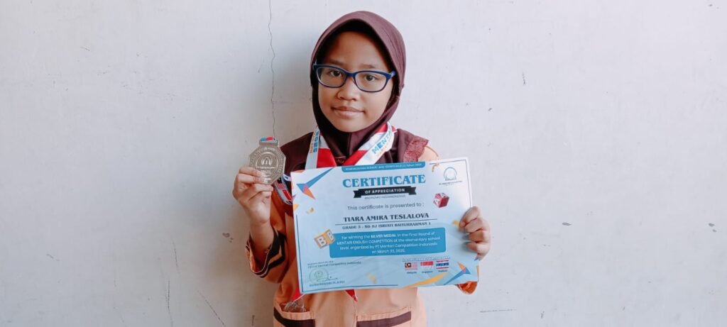 - Tiara Amira Teslalova 3C. Medali Perak Bahasa Inggris Tingkat Nasional by Mentari Competition Indonesia