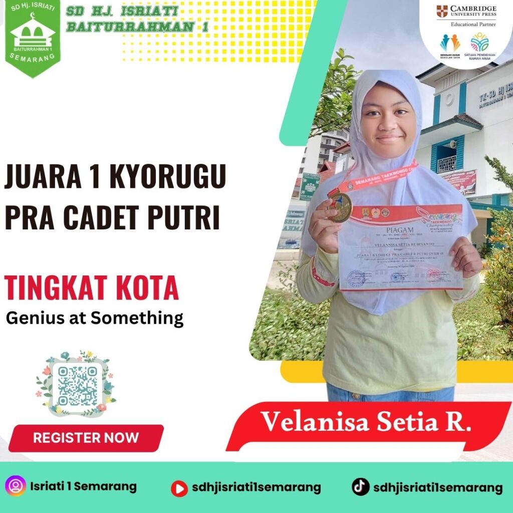 - Velanisa Setia Rubiyanto. Juara 1 Kyorugu Pra Cadet Putri Kejuaraan Taekwondo Championship Tingkat Kota