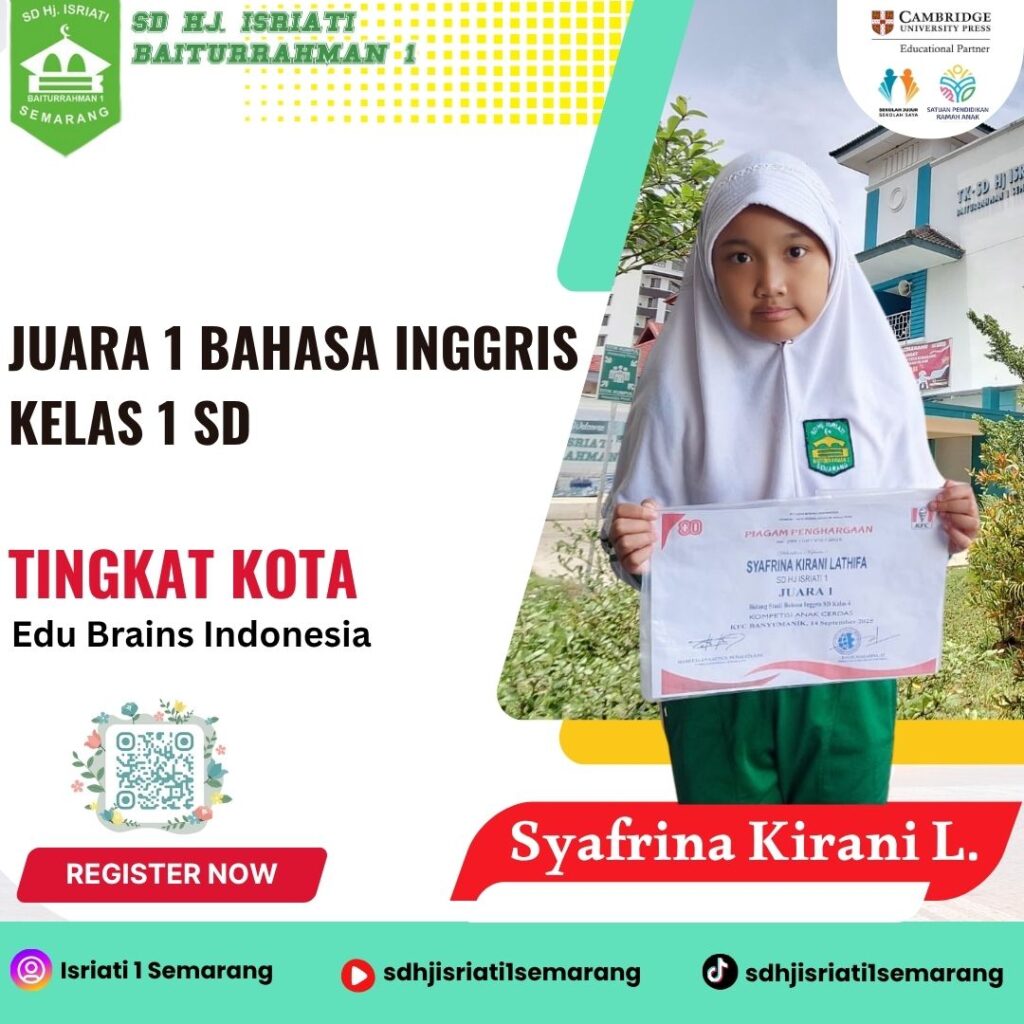 - Syafrina Kirani L. 4B. Juara 1 Bahasa Inggris SD Tingkat Kota by Edu Brains Indonesia