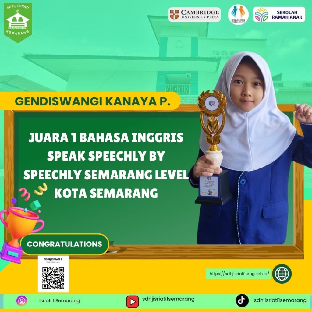 - Gendiswangi Kanaya P. 1B. Juara 1 Bahasa Inggris Speak Speechly by Speechly Semarang Level Kota Semarang