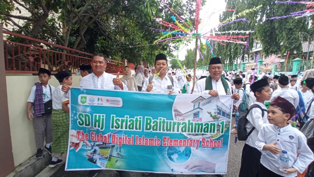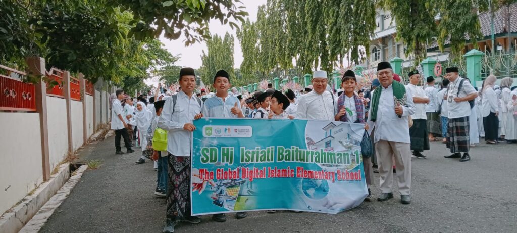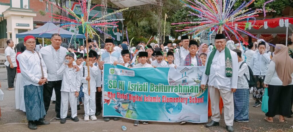 Anak-anak SD Hj. Isriati Baiturrahman 1 tampil penuh semangat mengenakan busana islami khas santri, membawa spanduk dan manggar dengan slogan-slogan semangat keislaman. Kirab diakhiri dengan pentas seni dari berbagai sekolah, menambah semarak dan kebanggaan seluruh peserta.