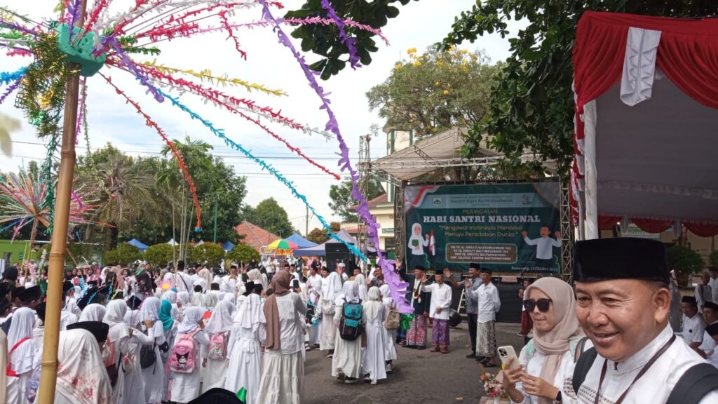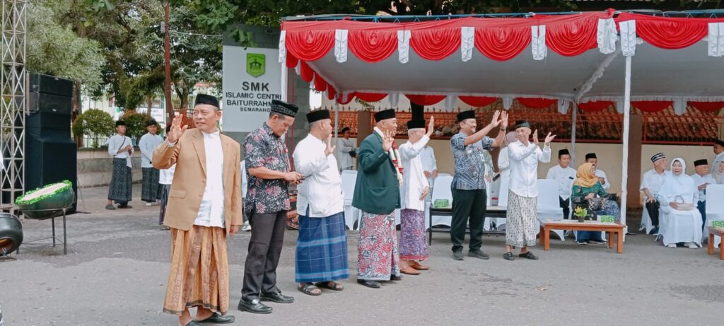 Setelah apel, Bapak KH. Muhibbin Alhafidz memimpin doa bersama, dilanjutkan momen sakral saat Dr. KH. Ahmad Daroji, Ketua Umum YPKPI Masjid Raya Baiturrahman Jawa Tengah, menabuh jidor sebagai tanda dimulainya pawai dan karnaval kirab santri.