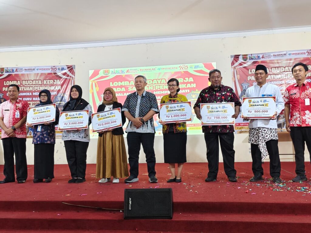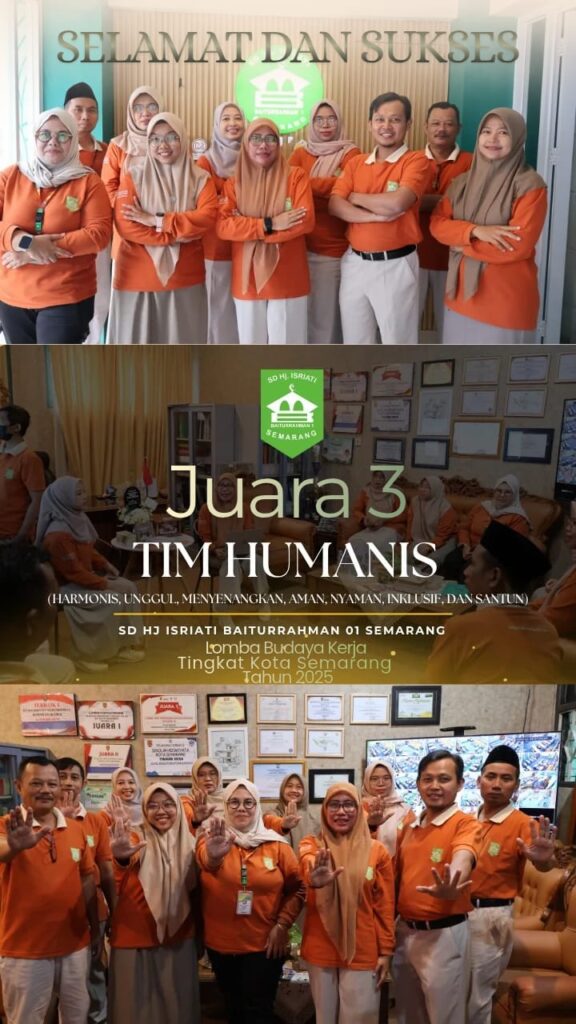 Dalam rangka memperingati Hari Guru Nasional (HGN) tahun 2025, Dinas Pendidikan Kota Semarang kembali menggelar Lomba Budaya Kerja bagi satuan pendidikan. Kegiatan ini menjadi ajang apresiasi sekaligus wadah bagi sekolah-sekolah di Kota Semarang untuk menampilkan inovasi, kreativitas, serta komitmen dalam membangun lingkungan belajar yang berkualitas. Tahun ini, SD Hj. Isriati Baiturrahman 1 Semarang turut ambil bagian dan berhasil meraih prestasi membanggakan sebagai Juara 3 dari enam finalis terbaik.